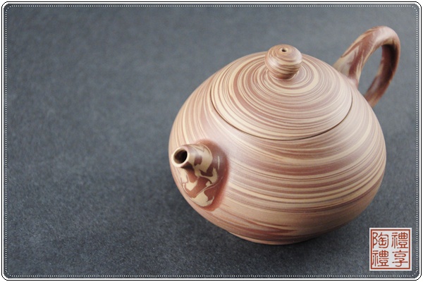 螺旋狀的紋路,環繞在手工細緻的茶壺上,從不同角度去觀看,兩種土質交織出獨一無二的隨性,是傳統手拉坯茶壺中,極為少見的壺款。